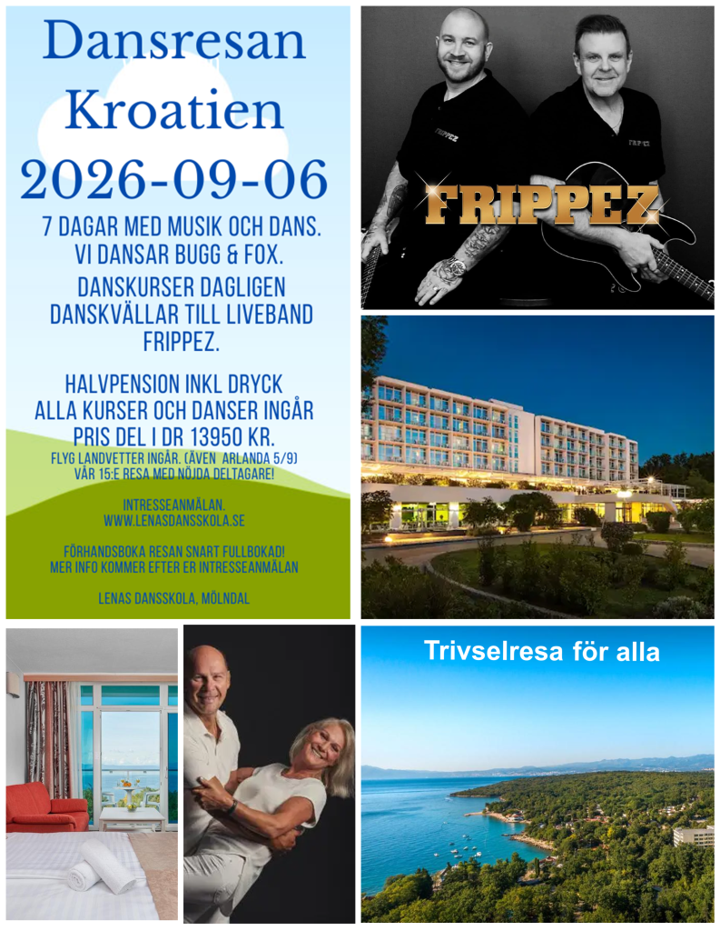 Vill du kombinera sol, hav och härlig dans? Då är vår dansresa till den vackra ön Krk i Kroatien något för dig! Lenas Dansskola arrangerar en vecka fylld med dansglädje, musik och gemenskap. Resan går söndag 6 september 2026 och varar i 7 dagar. Platserna är begränsade, så passa på att säkra din plats!